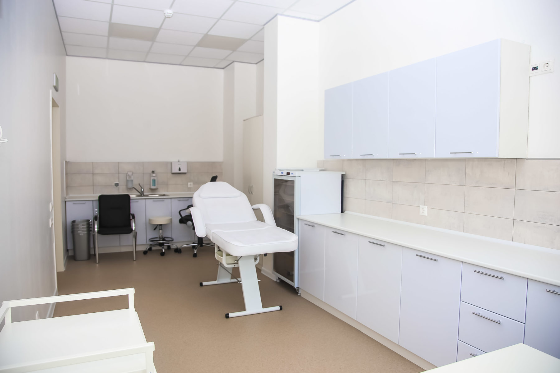 Силами нашей компании была разработана дизайн-концепция клиники, выполнена рабочая документация по всем разделам, на основании которой был реализован ремонт. Также была спроектирована, согласована и смонтирована антресоль, при этом заказчик получил дополнительно 100м2 площадей.