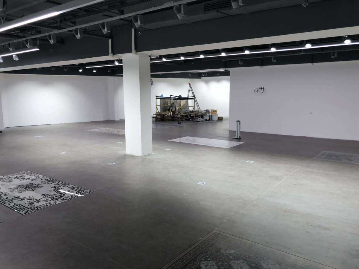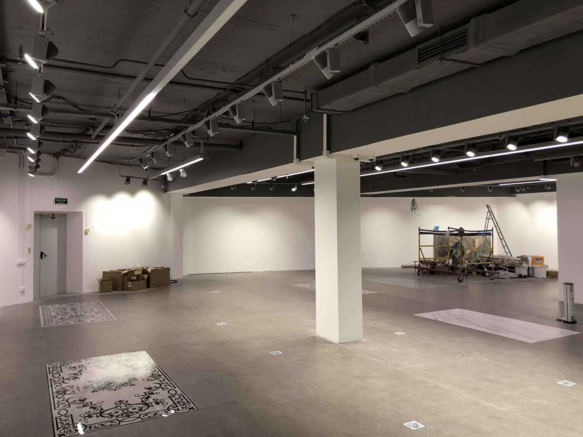 Ремонт будущего салона плитки KERAMA MARAZZI‎ начали с демонтажа оборудования. После окрасили краскопультом потолки в черный цвет, залили стяжку пола, заштукатурили стены. Развели вентиляцию и перемонтировали спринклерную систему пожаротушения. Смонтировали светильники. Это не сложные работы, с ними мы справились быстро. Самым интересным элементом проекта стала напольная плитка шириной 600 мм и длинной 1200 мм. Вес одной плитки такого формата примерно 90 кг. Каждую плитку монтировали 4 рабочих.