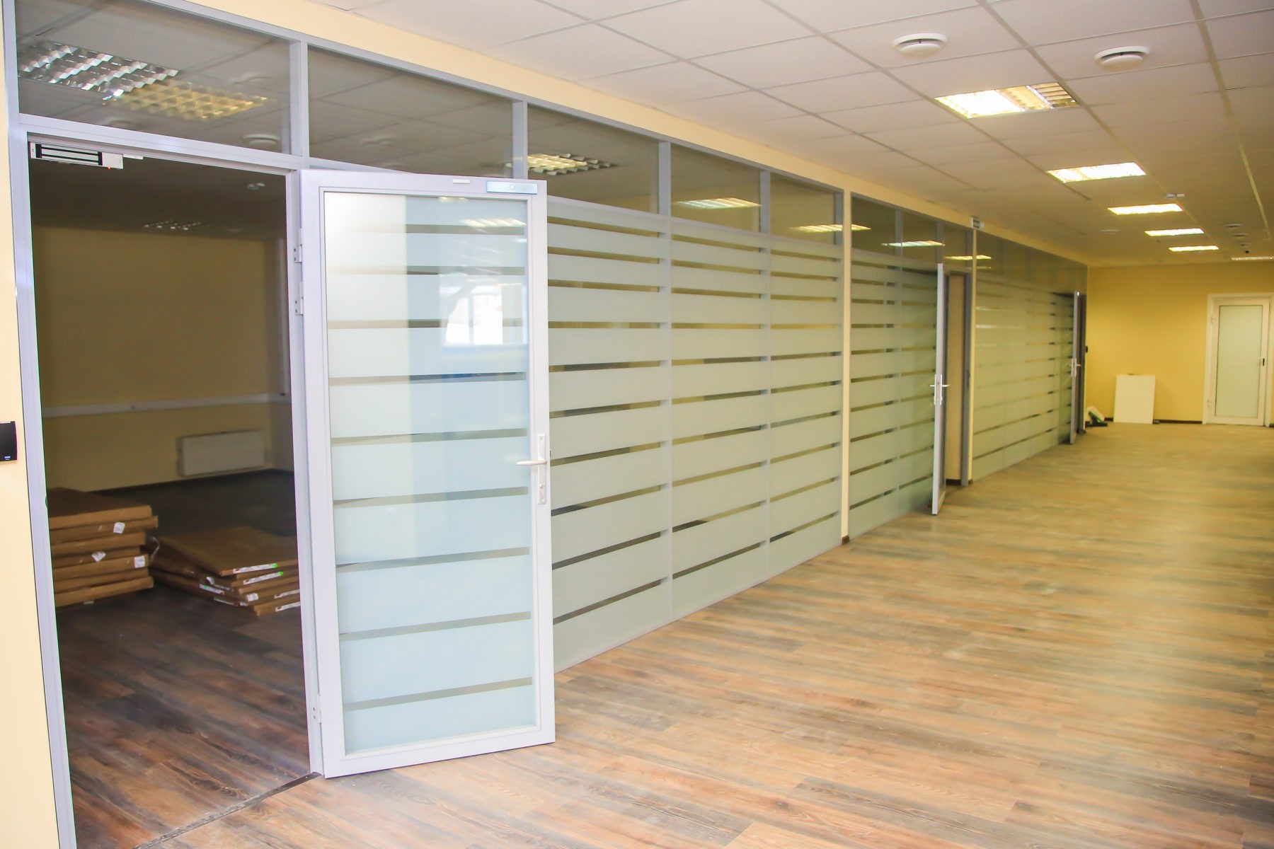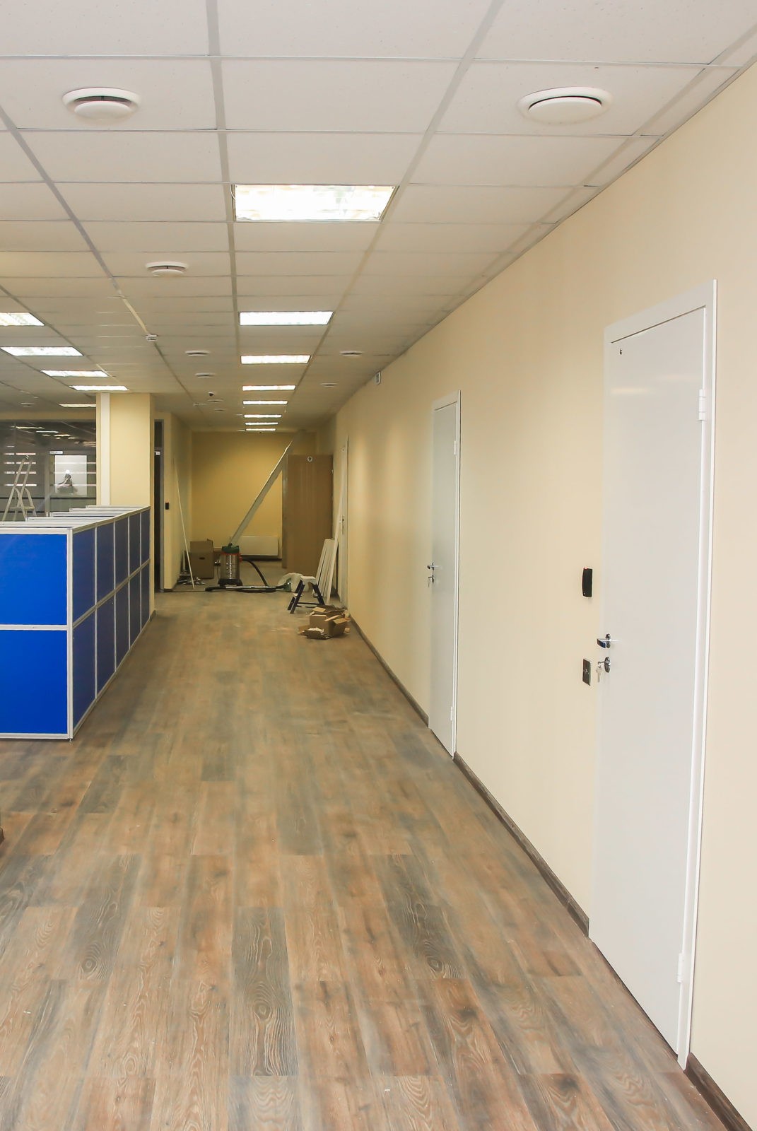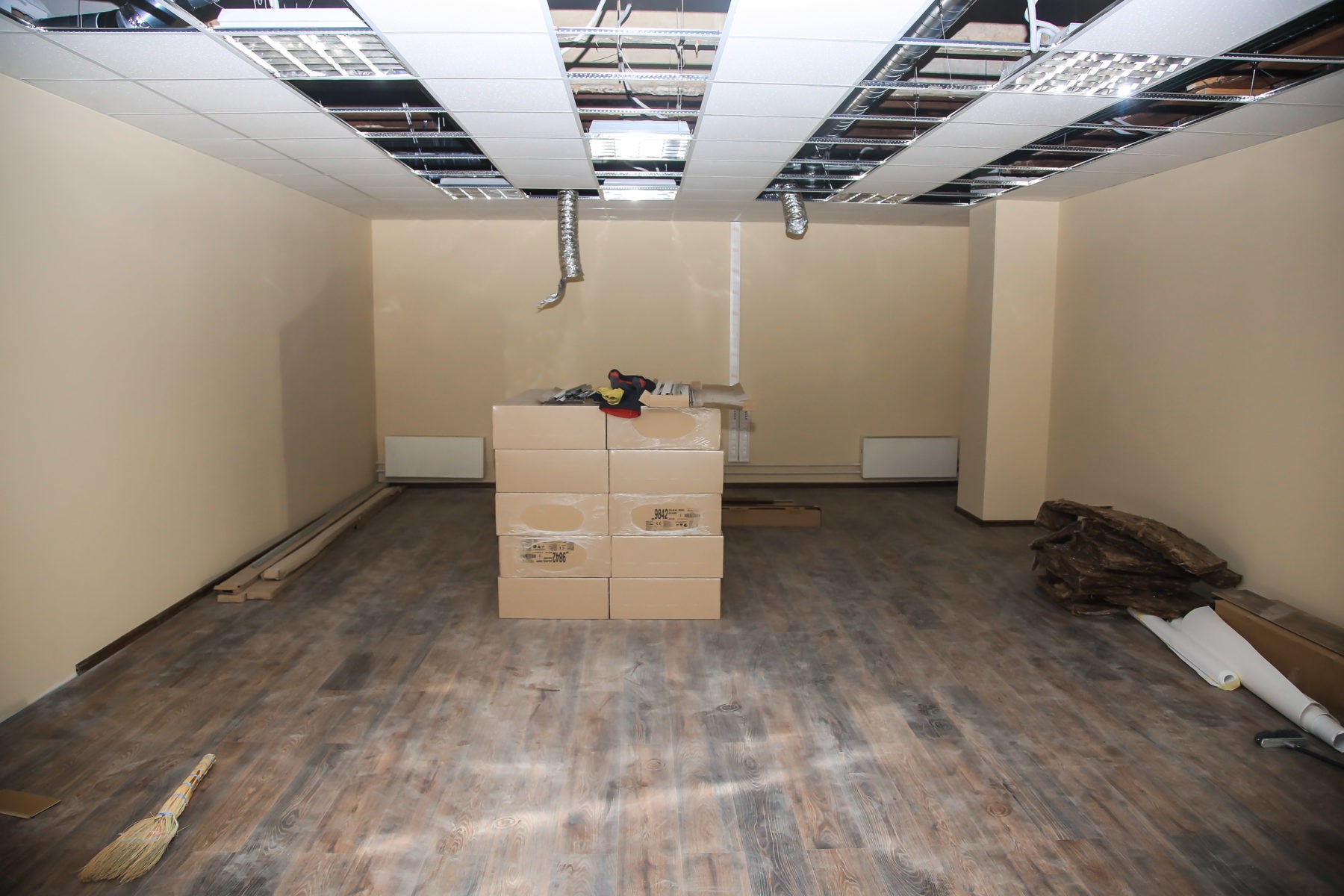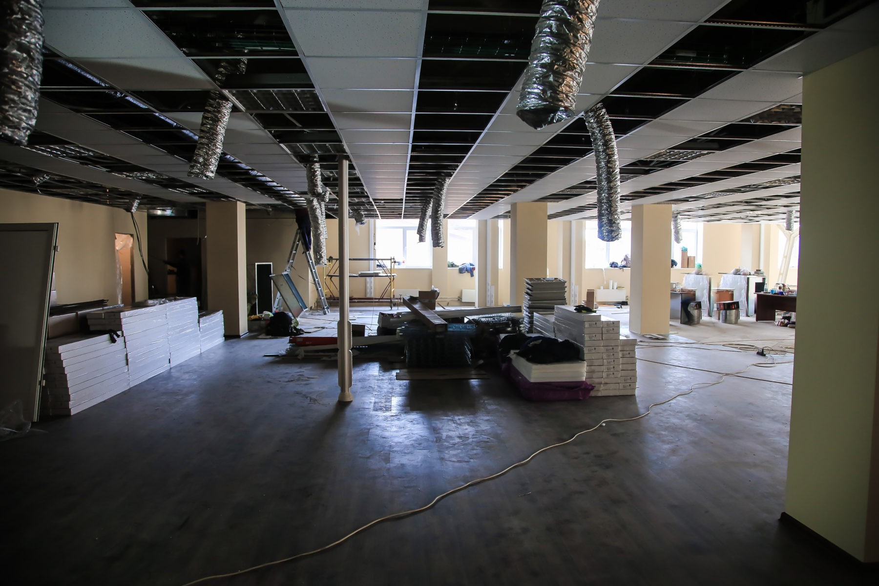 Силами нашей компании реорганизовали офис кабинетного типа в open-space площадью 900 м2 с заменой системы вентиляции и кондиционирования. Полностью была замена система электроснабжения и система СКС. Смонтированы шумоизоляционные перегородки кабинета руководителя и переговорной. Выделена кухня для сотрудников компании.