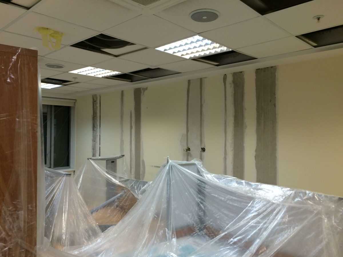 После составления плана работ и индивидуального проекта наша команда специалистов в начале декабря приступила к работе. Во время ремонта офиса были выполнены такие работы, как: