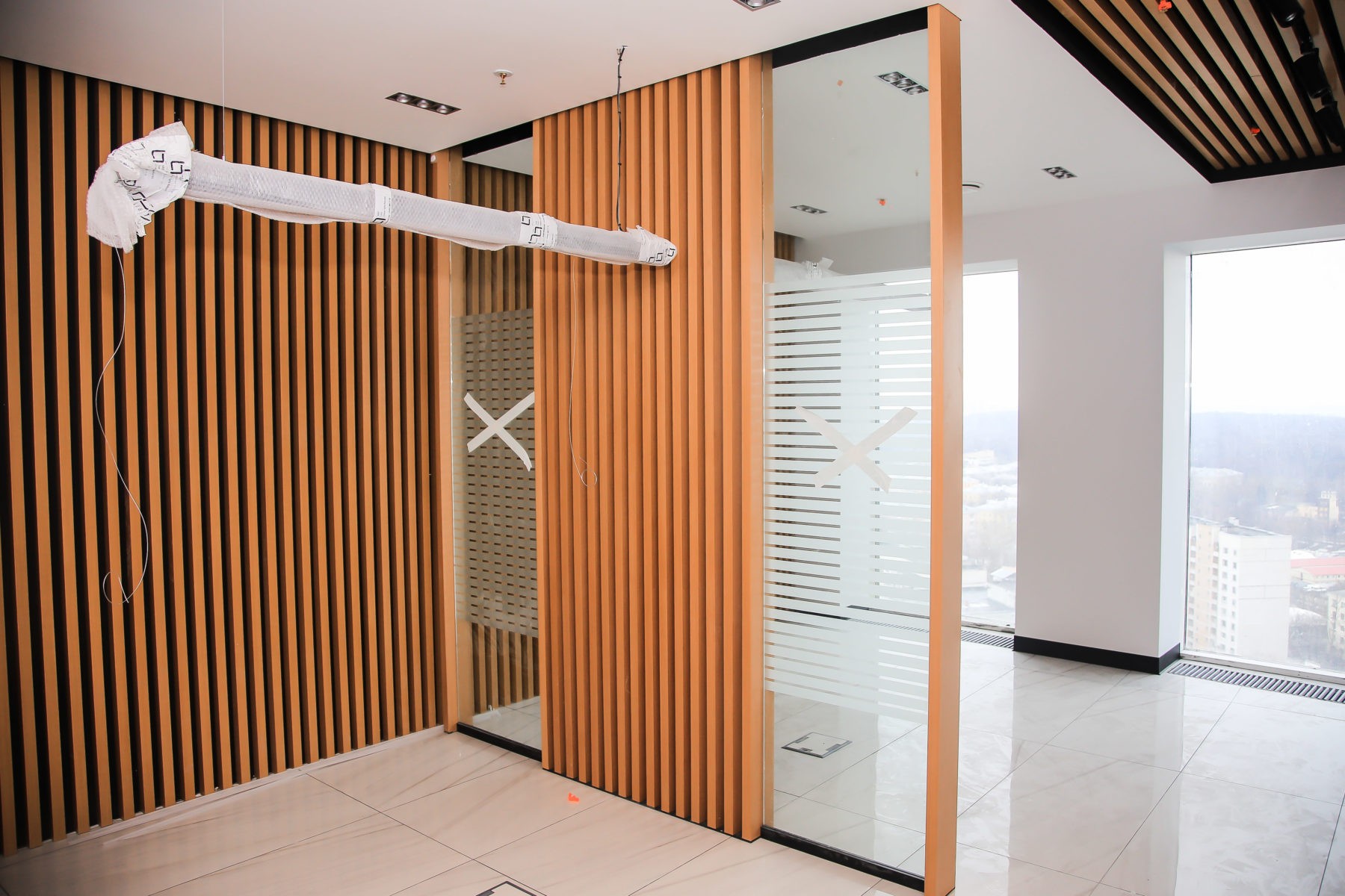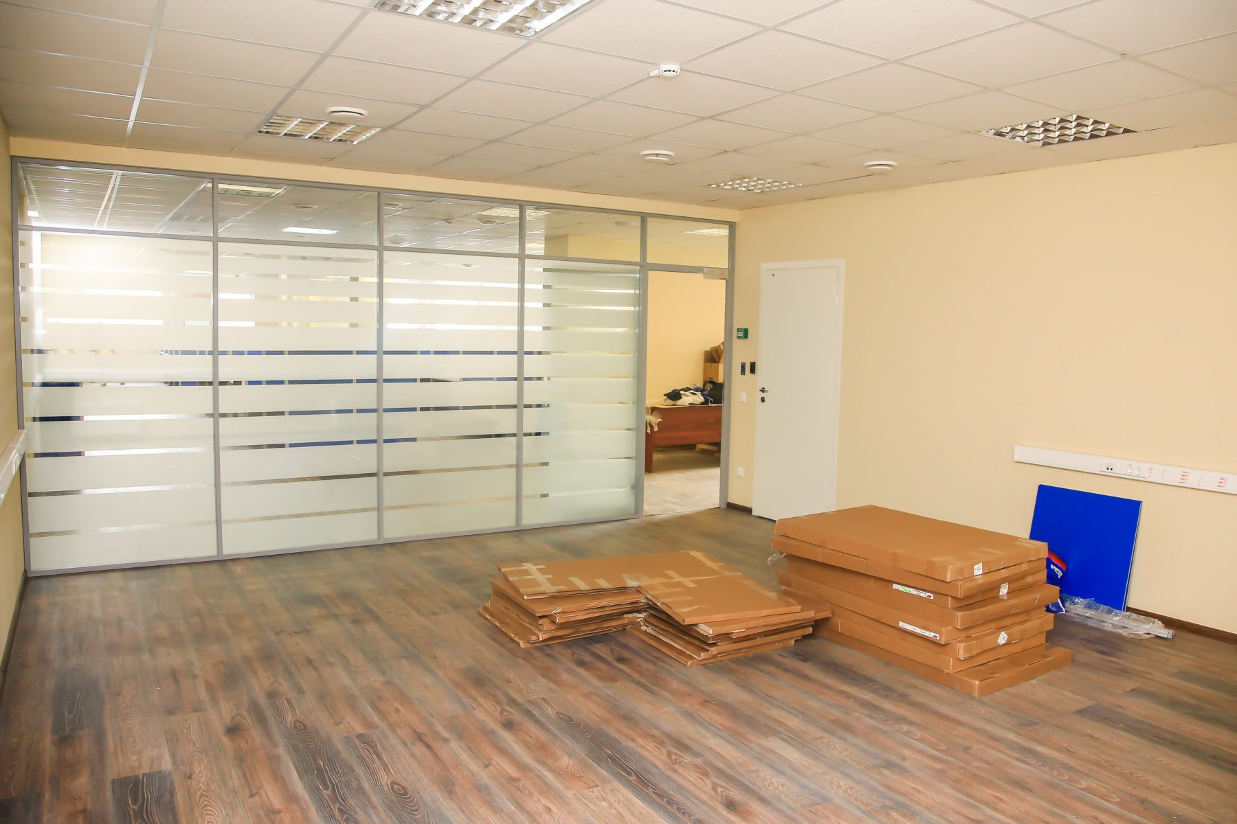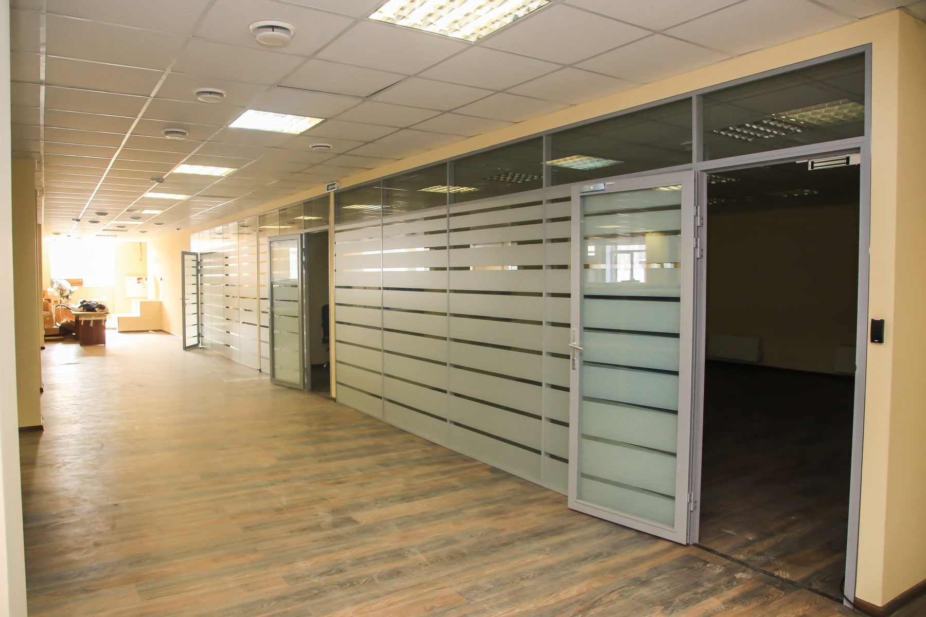 — смонтированы офисные перегородки с ламинацией