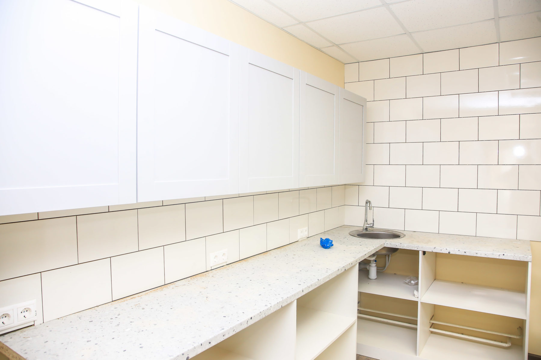 — повешены потолки Армстронг