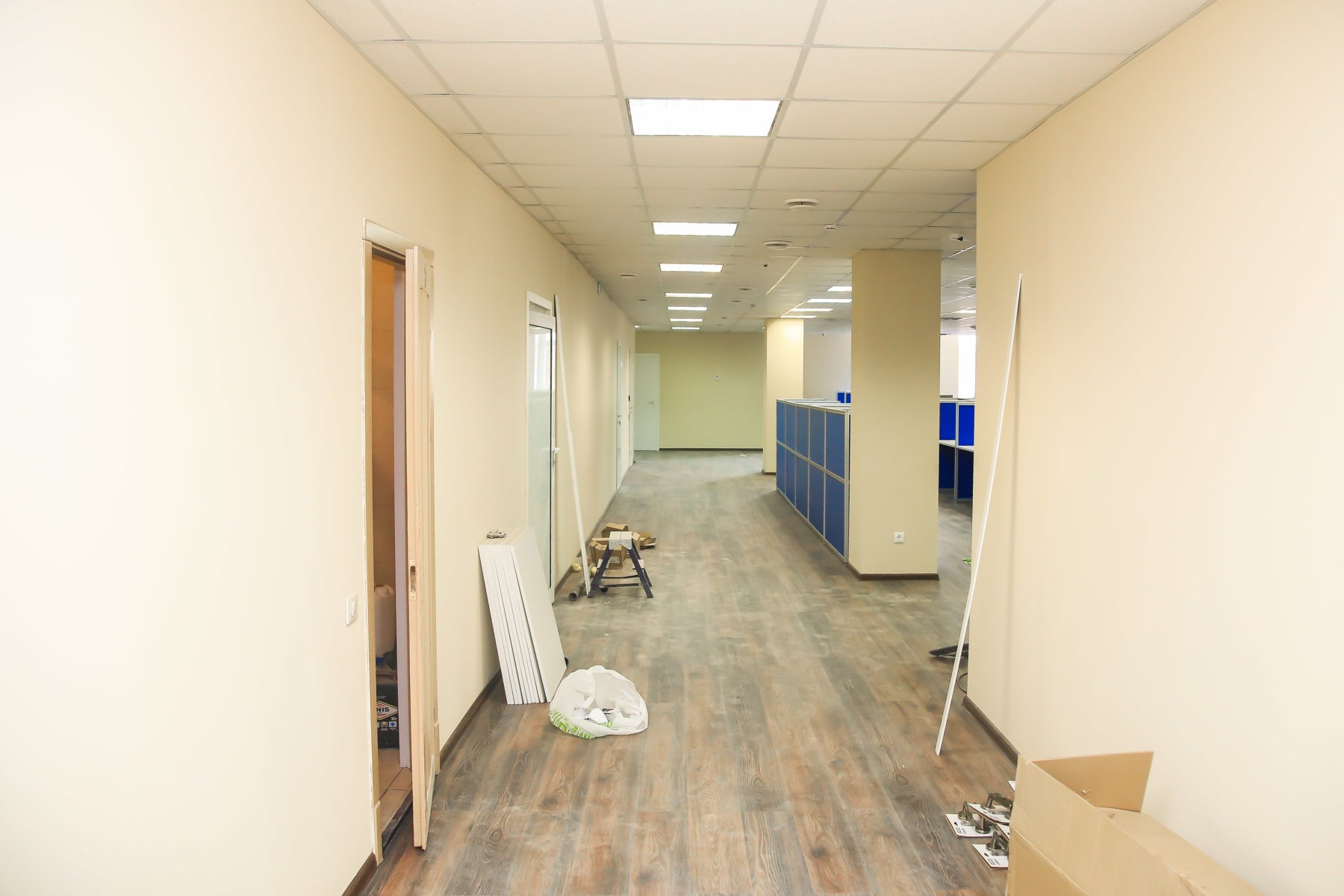 После составления плана работ и индивидуального проекта наша команда специалистов в начале декабря приступила к работе. Во время ремонта офиса были выполнены такие работы, как: