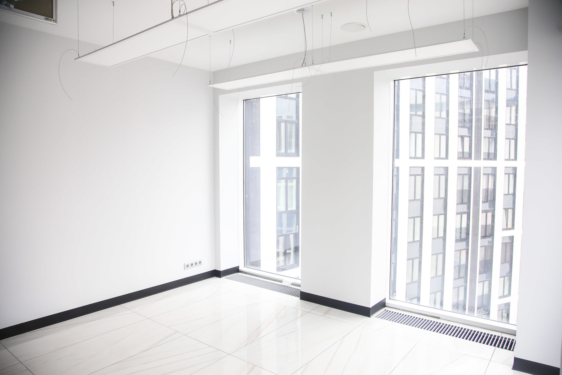 Помещение приняли в состоянии Shell and core (голые стены). Были выполнены следующие работы:
