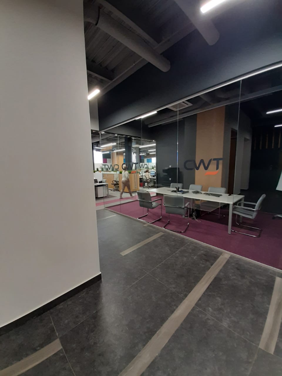 На площади 200 м2 были запланированы 2 офисных помещения, разделенных искусственно возведенной стеной. Сооружены отдельные помещения для санузла (на этаже не общего), переговорные комнаты, серверная. Были смонтированы: